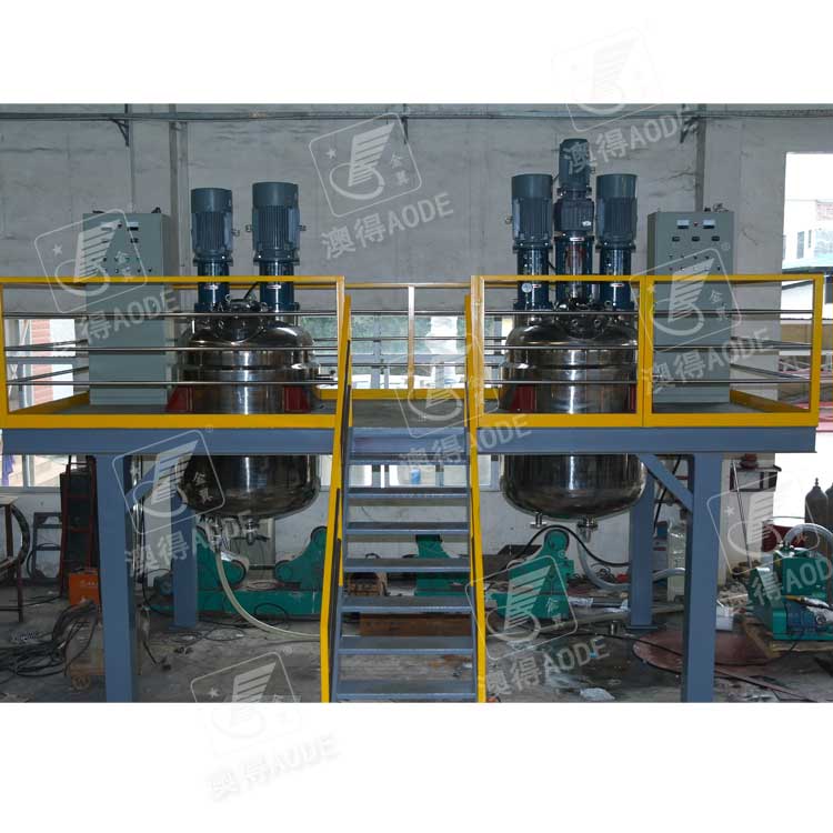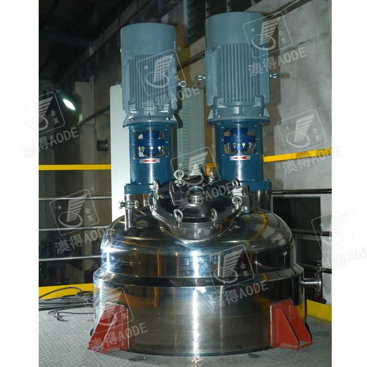 3、所有材料添加完毕(包括增稠剂),应将两侧分散转速调到1000~1200转/分,视工艺要求而定,一般约以此转速连续运转10~20分钟左右可完成增稠作业。